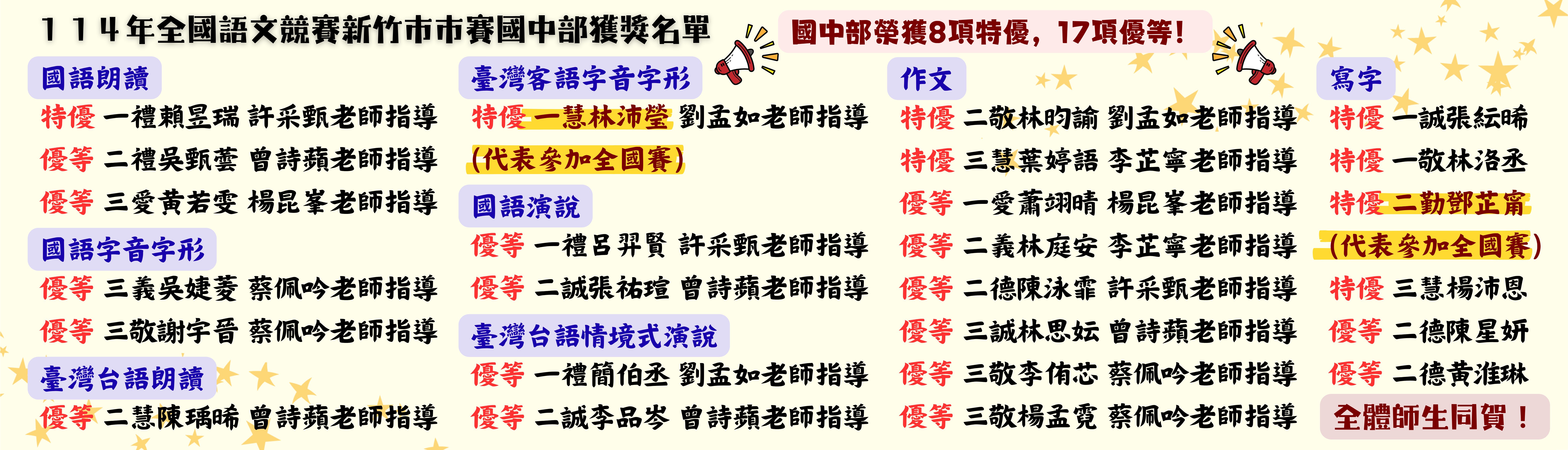 狂賀狂賀! 本校國中部114年升高中榜單卓越斐然! 【更新資優班】 |