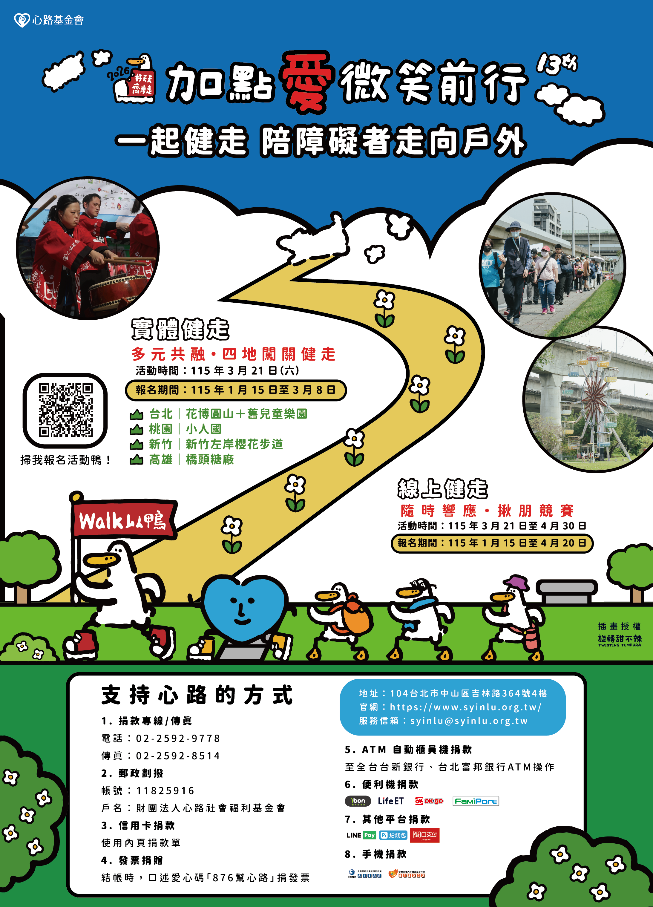 | 公告主旨 | 轉知心路基金會第13屆「好天天齊步走」健走活動 |