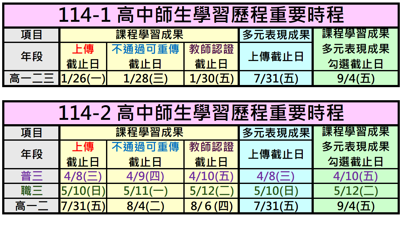 | 公告主旨 | 114-1學習歷程檔案作業時程期末注意事項說明通知單 |