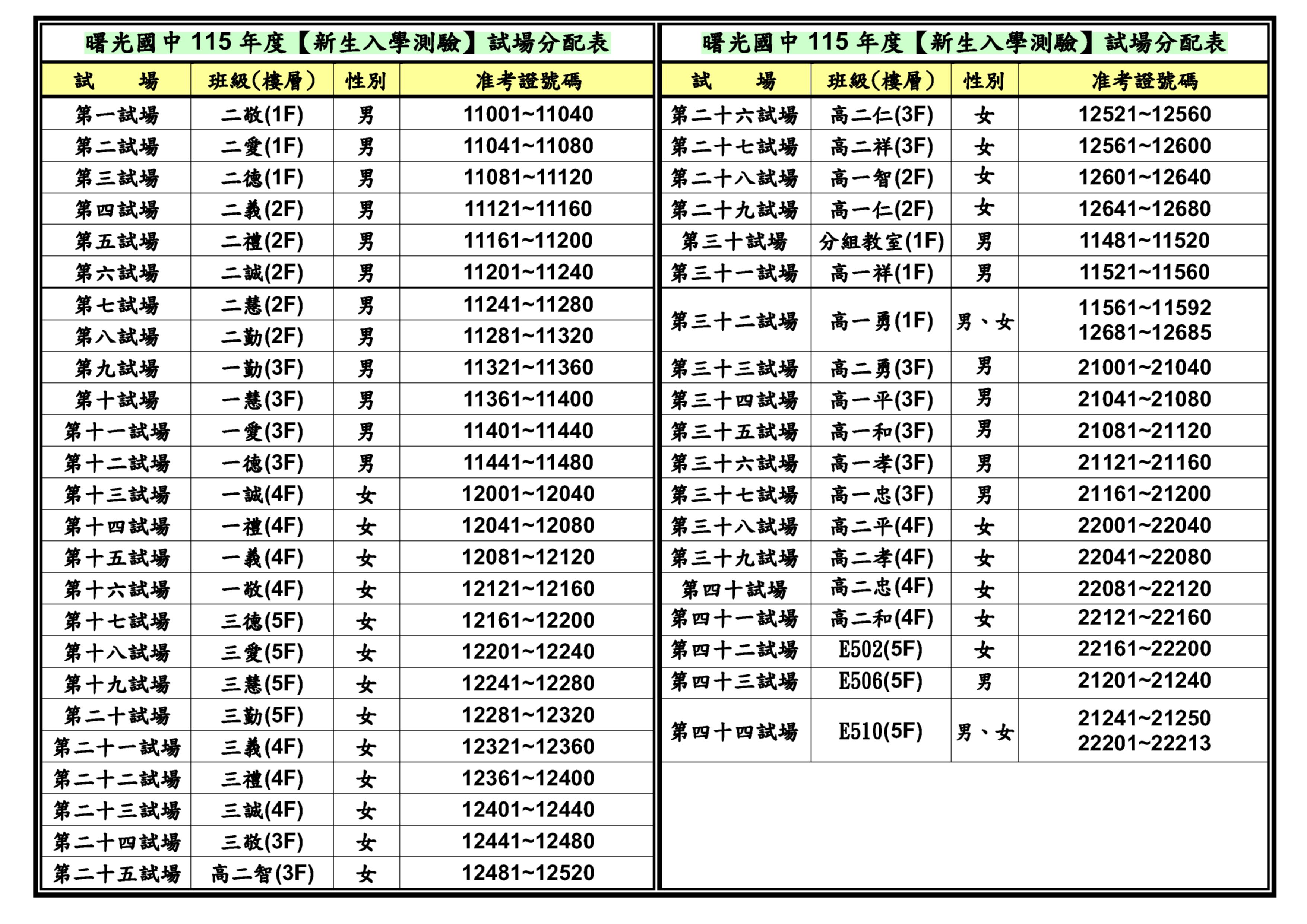 | 公告內容 | 週六仍有學生留校自習,不開放提前看考場。 請牢記試場編號,週日到校報出編號, 本校將有師長、志工引導考生入座。