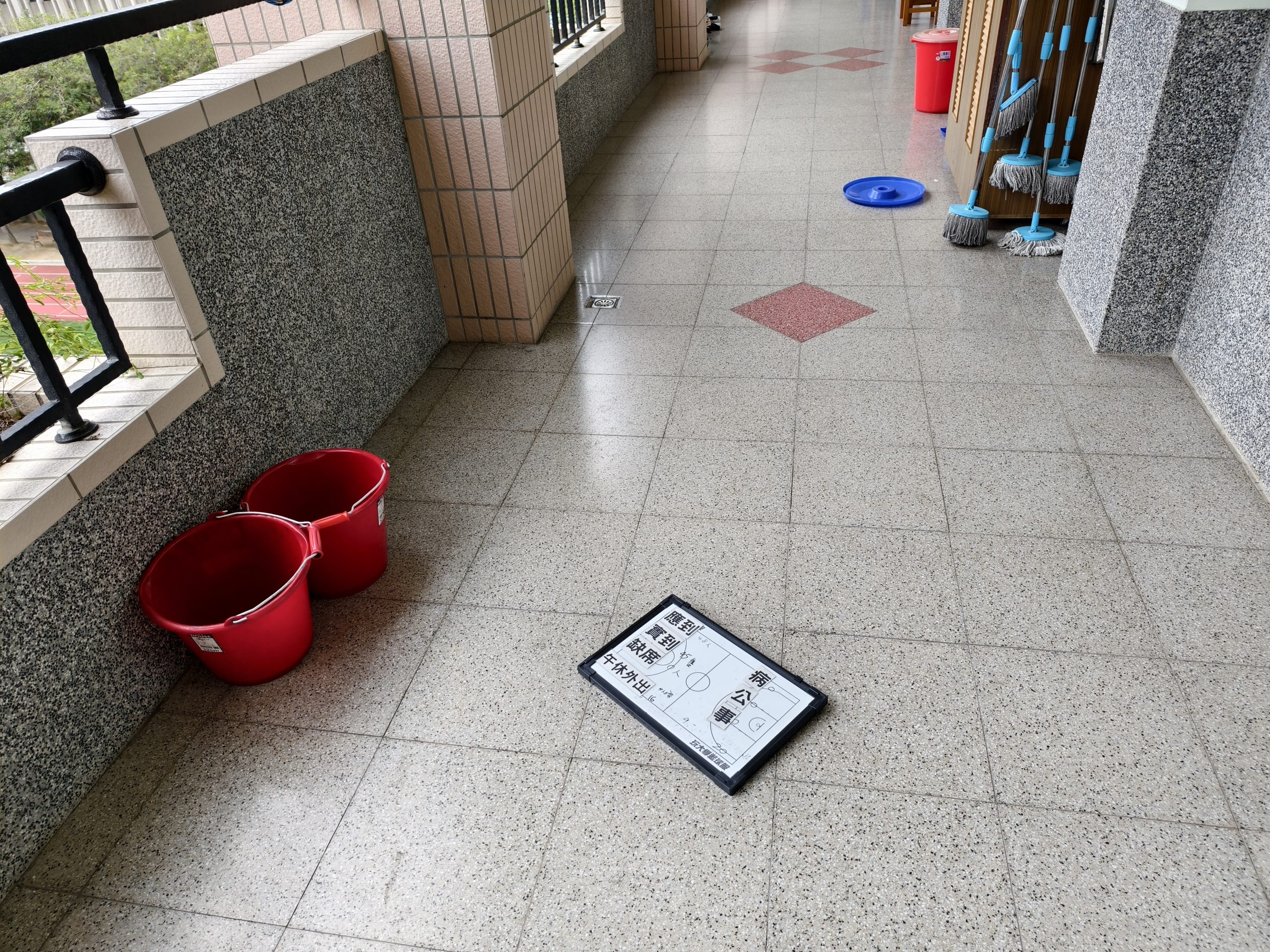 國一義班教室的走廊上,有一塊瓷磚左右搖晃,此磁磚的位置在附圖的"點名板"下。